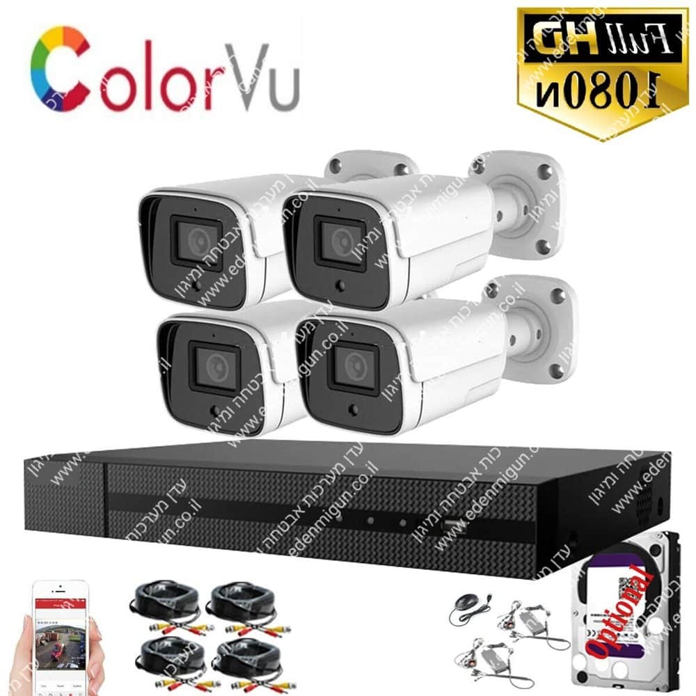 • 4 מצלמות צינור בטכנולוגיה COLORVU המאפשרת תמונה צבעונית גם בלילה מתאימות להתקנה חיצונית מוגנות גשם.